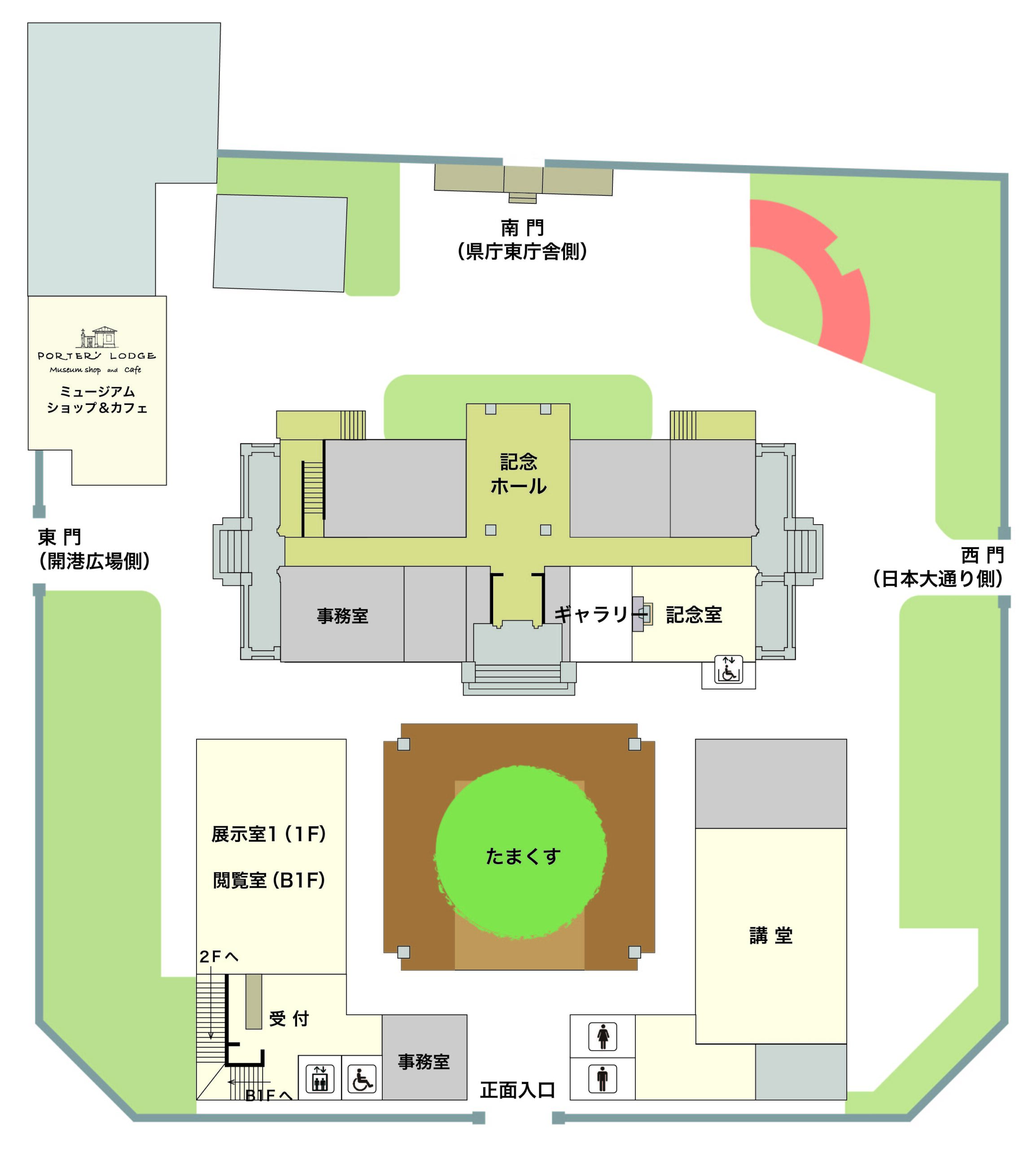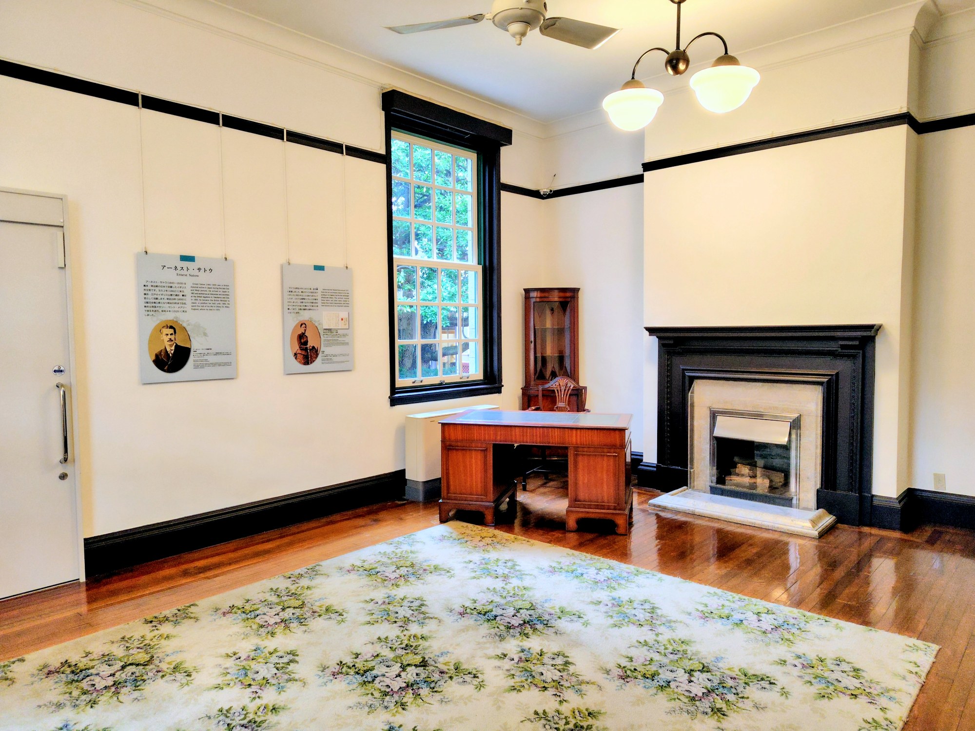 昭和6年(1931)に建てられたもので、1階中央の記念ホールは旧英国総領事館時代には待合室だったところです。現在は来館者の休憩室として使われています。