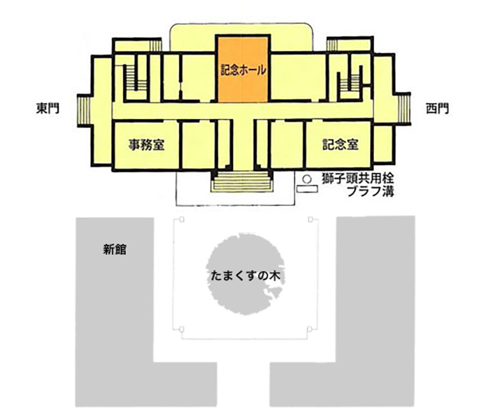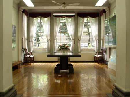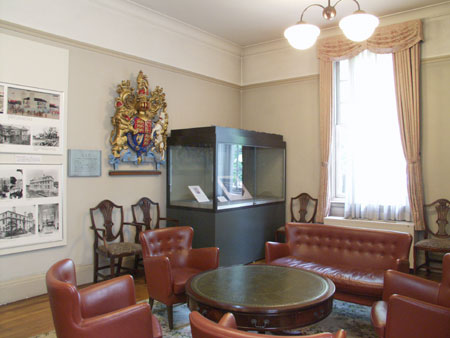 昭和6年(1931)に建てられたもので、1階中央の記念ホールは旧英国総領事館時代には待合室だったところです。現在は来館者の休憩室として使われています。