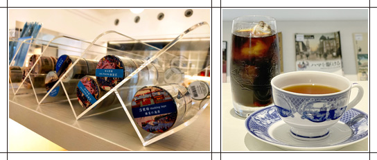 カフェスペースでは挽きたてコーヒー・紅茶とセットの横浜銘菓をお楽しみいただけます。