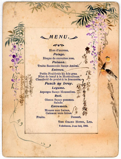 横浜市保土ケ谷区にお住まいの冠木宏之氏よりグランド・ホテルの封筒が寄贈されことは、『開港のひろば』100号で報じたが、冠木氏寄贈の、グランド・ホテルの絵はがきと、当館が所蔵するメニュー(長澤信雄メニューコレクション)とともに特別資料コーナーで紹介する。