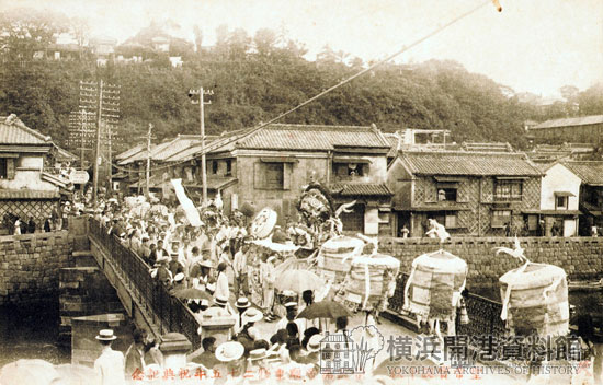 横浜開港資料館では、150周年を記念して、今回の記念行事の参考となった関帝廟に関する古写真や絵はがきのオリジナルや、ちょうど100年前に行われた関帝廟50年祭りを報じる新聞記事のパネルなど、8点あまりの資料を展示します。