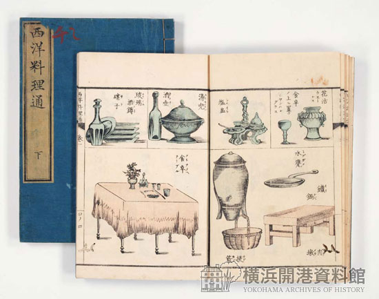 明治5(1872)年、2冊の翻訳料理本が刊行されました。仮名垣魯文(かながき ろぶん)が著した『西洋料理通』(せいようりょうりつう)と、敬学堂主人(けいがくどうしゅじん)による『西洋料理指南』(せいようりょうりしなん)です。なかでも『西洋料理通』は、横浜の居留地に住む英国人が、料理をする際の参考のため使用人に与えた「手澤帖」(てびかえ)2冊を、仮名垣魯文が入手し、翻訳、刊行したもので、明治初頭の横浜に住む外国人の食生活をうかがい知ることのできる貴重な資料です。この2冊の翻訳料理本には、カレーの作り方が紹介されており、これらの本により、日本に初めてカレーの作り方が伝えられました。今年はこれら2冊の本が刊行されてから140年目にあたります。