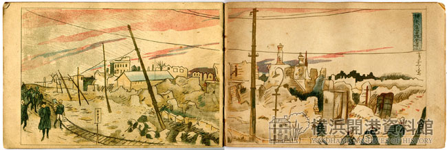 - “Earthquake pictorial of Japan, 1st September 1923 震災紀念画帖” Capt. T. Kawakami[著] Y.M.C.A. Seamen’s club刊 [大正12(1923)年]当館蔵