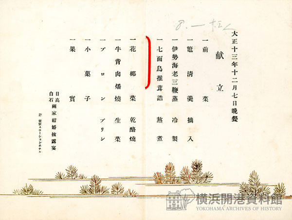 12月はクリスマスの季節。12月1日から横浜開港資料館の特別資料コーナーでは、クリスマス・ディナーをはじめとする明治大正の洋食メニューを公開中。なかでも関東大震災が起こった大正12年12月25日のクリスマス・ディナーや結婚披露宴など、東京ステーションホテルのメニューに注目。当時のコース料理は「免論ん」「鼈清羹」で始まるのが定番だったよう。これは何のお料理でしょう。答えは展示室で!