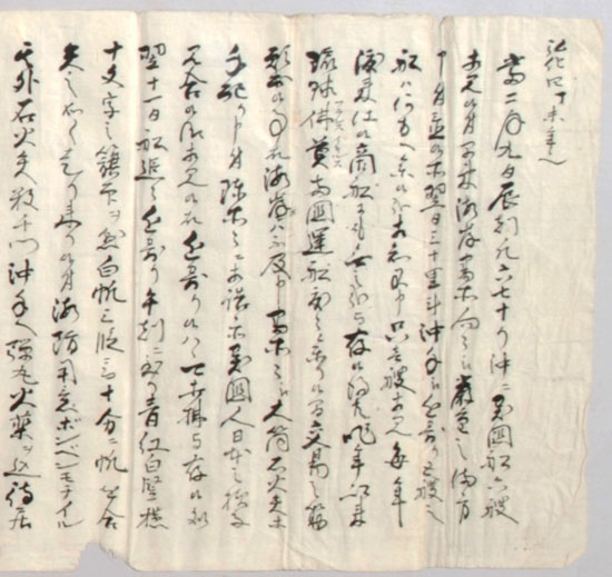 しかし、この「幻の薩英戦争」の流言は江戸にまでひろまりました。中国大陸で「アヘン戦争」をおこした大国イギリスへの警戒心がもとになったといえます。今回の特別資料コーナーでは、愛知県に残っていたこの「幻の薩英戦争」の古文書を紹介し、開国直前の世界情勢と流言を生み出した幕末の時代に思いをはせる企画です。