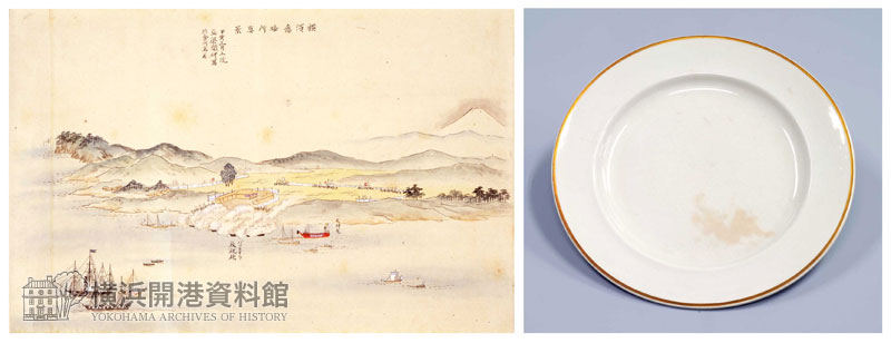 右:浦賀奉行所与力・合原猪三郎にペリーから贈られたとされる皿 合原義人氏蔵