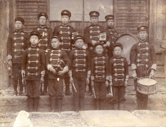 江戸時代から、戸塚で代々医院を開業してきた伊藤亨(とおる)家には、古文書をはじめとする資料が伝わっており、一部は横浜開港資料館に寄託されています。そのなかには、絵雑誌が含まれています。多色刷りの絵雑誌は、印刷技術が発達した明治時代の終わり頃から、大阪や東京で幼児向けに発行されるようになりました。人気の高かった『幼年画報』が、戸塚でも購読されていたことがわかります。また、明治時代のアルバムには、アコーディオンを手にする少女や小菅ヶ谷(現在栄区)の太鼓隊など、楽器に親しむ写真が見られます。ここでは、絵雑誌とともに、ちょっとハイカラな明治時代の子どもたちの姿を紹介します。