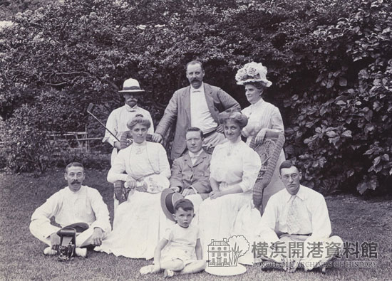 後列左、ゴルフクラブを持つサムエル、後列中央はバックランド氏、その右が夫人のクララ