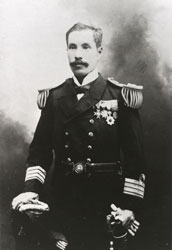 浩吉は、1874(明治7)年に海軍兵学校予科に入学し、1882(明治15)年、本科を優秀な成績で卒業し、海軍士官の道を歩み始めます。日清戦争で武勲をたてるなど活躍し、1909(明治42)年には海軍少将となりました。