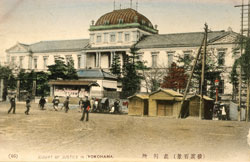 1890(明治23)年3月10日に完成した横浜地方裁判所の庁舎。煉瓦造り2階の建物で、内部には、横浜地区裁判所や横浜供託局、検事局なども所在した。