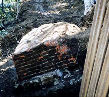 この領事公邸跡地近くに、煉瓦造井戸の遺構の存在が以前から知られていた。今回、井戸の周囲から煉瓦造基礎(図2)4基が掘り出され、市教育委員会事務局文化財課の依頼を受けて調査を実施した吉田鋼市横浜国大大学院教授とともに文書資料と突き合わせた結果、明治29年の領事公邸竣工時、まだ上水道が山手まで敷設されていなかったために設置された井戸と井戸水汲み揚げ用風車の基礎であることが判明した。
