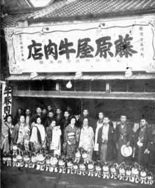(3)「藤原屋牛肉店店頭でのお宮参りの記念写真」(明治45年)1点