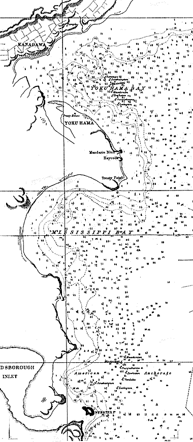 ペリー艦隊が命名した地名はその後消えてしまったが、ミシシッピ湾(根岸湾、海図の中央部分)だけはその後も長く使われることになる。
