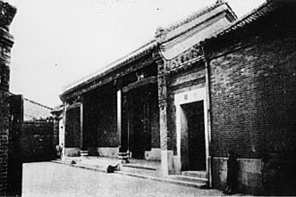 図5は1910年頃の関帝廟であるが、煉瓦造りの廟と中庭が写っている。航空写真によって、関帝廟の正面が現在とは異なり、図2の地図ではYEBISMACHI(現中山道)に向いていたことがわかる。