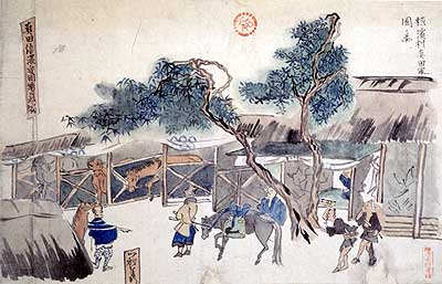 「真田家固ノ図」「退帆ヲ観ル図」は、ペリー来航当時の騒動を描いた風俗画だが、同館所蔵の「神奈川宮河岸ノ図」「鶴見橋ヨリ望異船図」も、印影こそ無いが、これらと一連の渡辺の旧蔵史料と思われる。