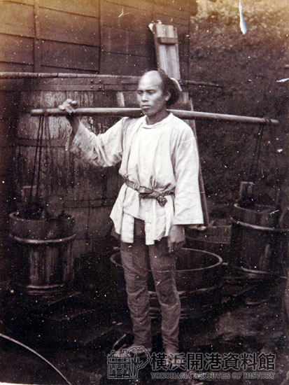 うみめんした横浜よこはまでは、ふか井戸いどをほっても、みずにはなりませんでした。横浜よこはま住民じゅうみんは、ちかくのむらからみずはこんでくる水売みずうり①にたよっていました。水問題みずもんだい解決かいけつのため、明治政府めいじせいふ多摩川たまがわみずを、のパイプをつちなかめて横浜よこはまにひきいれることをおもいつきました。横浜よこはま代表者だいひょうしゃとしての高島嘉右衛門たかしまかえもん石川徳右衛門いしかわとくえもんらと、多摩川たまがわ農業用水のうぎょうようすいとして利用りようしている地元代表じもとだいひょう添田知通そえだともみちは、1871ねん明治めいじねんから工事こうじをはじめて、2年後ねんご完成かんせいさせました。しかしまちなかにきこんだかわみずはすぐにくさってしまって、良好りょうこうみずとはなりませんでした。水問題みずもんだい解決かいけつは、1887ねん明治めいじ20ねん山梨県道志川やまなしけんどうしがわみなもととする、近代水道きんだいすいどう実現じつげんをまたなくてはなりませんでした。