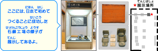 複製ふくせいつつみ石鹸せっけん商標しょうひょう と実物じつぶつその版木はんぎ