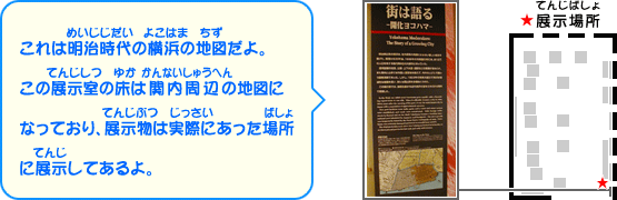 てんじあんない てんじぶつ [地図ちず]明治めいじ時代じだいの横浜よこはま まちはかたる -かいかヨコハマ- ぶんしょにみるよこはましょうにんのかつやく こしゃしんにみるかんないのまちなみ えはがきにみるまちのにぎわい ちずにみるよこはましのけいせい しんぶん よこはましゃしん てつのはし(かねのはし) よこはましやくしょ ちゅうかがい せっけんこうじょう やまてともとまち がいこくじんせんきょうし がいこくじんきょりゅうち おおさんばし うんじょうしょ ぼうえきこうよこはま よこはままいにちしんぶん しんこうふとう よこはまステーション めいじまつねんのよこはまこう