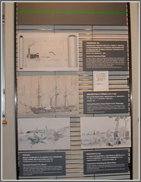 磯子村(現・横浜市磯子区)の村役人、堤磯右衛門が描いたペリ-艦隊の蒸気フリゲート艦ミシシッピー号。庶民の記録した 黒船図である。