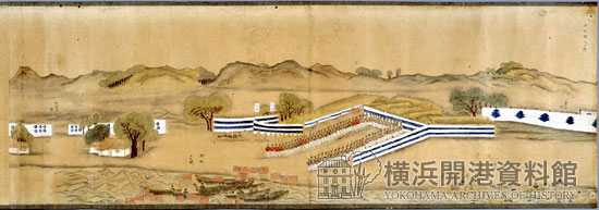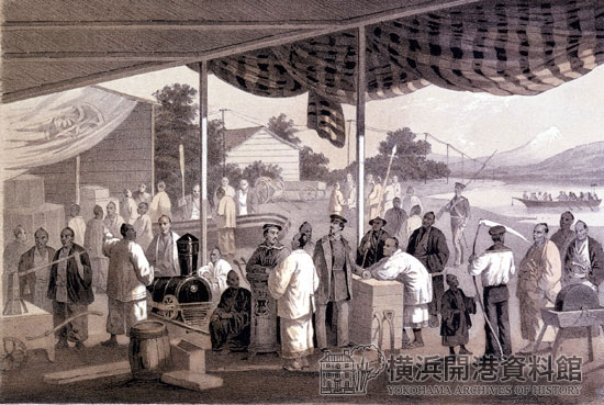 条約交渉が横浜でおこなわれることが決まり、幕府は浦賀に用意していた応接所の建物を、10日間ほどで現在の神奈川県庁付近に移しました①。